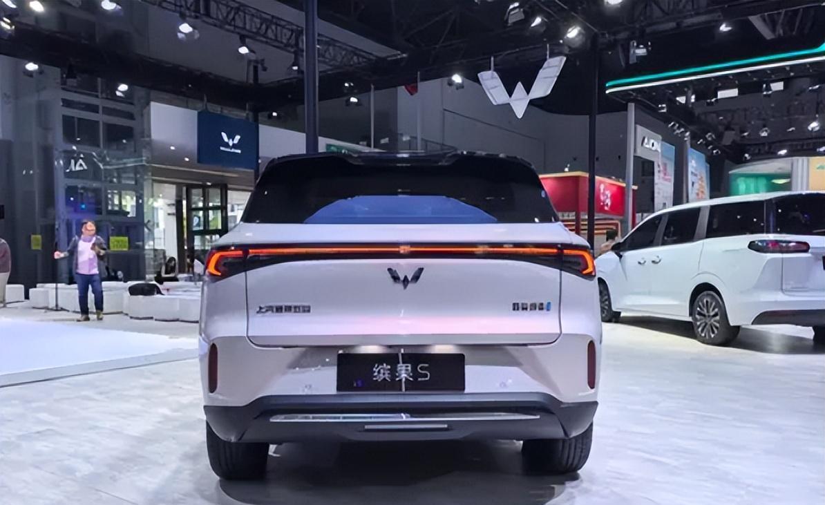车尾那个贯穿式的灯带,右下角标着“五菱缤果S”,身份直接亮出来了。